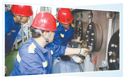 钦州港航道疏浚也遇到了坚硬岩石,过去一般靠炸药爆破。考虑到当地的环境保护需求,“天鲲号”青年团队夜以继日地攻关,解决了这一难题。项目期间,重达40多吨的抛泥泵突然出现故障。等厂家技术人员来修,又要好些日子。“实在等不起!”全体船员决定自己解决。他们分两班倒,5天6夜加班抢修。要知道,抛泥泵光一个螺丝都要20来斤,有时安装一个部件,要靠好几个小伙子协力推动。抛泥泵终于修好了,小伙子们却累惨了,吃饭时连筷子都拿不稳。