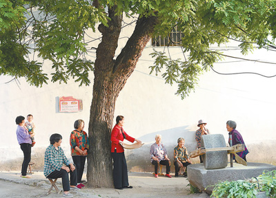 赵欣欣(左五)和乡亲们在一起。 |