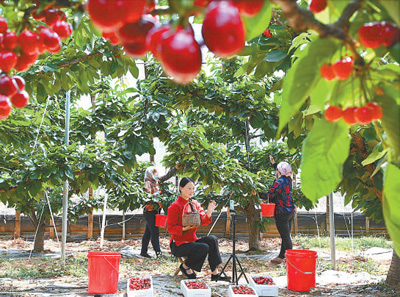 赵欣欣在果园直播。 |