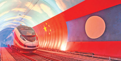 中国和老挝加快打造更加紧密的“一带一路”伙伴关系,共同推动构建人类命运共同体。2021年12月3日,全长1035公里、连接昆明和万象的中老铁路全线开通运营。图为10月15日,“澜沧号”动车组通过中老友谊隧道内的两国边界交付老挝方面。 |