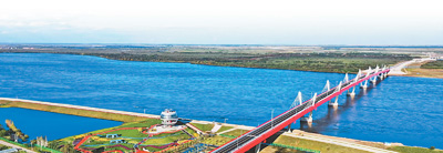 2022年6月10日,国家主席习近平和俄罗斯总统普京共同关心推动的重大跨境基础设施项目黑河—布拉戈维申斯克公路桥正式开通,打通一条两国互联互通的新通道。图为中俄黑河—布拉戈维申斯克公路桥全景。 |