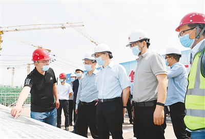 加大实践锻炼力度,优化干部成长路径,引导干部在聚焦服务保障重大战略、重大工程、重大项目、重点任务中锻炼成长。图为挂职干部在河北雄安新区启动区科学园现场办公解决项目建设中存在的问题。 |