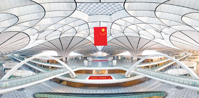 北京大兴国际机场2019年9月正式投用,是全球最大单体航站楼、首都重大标志性工程、京津冀协同发展的重要成果,推动北京迈入航空“双枢纽”时代。京冀两省市统一领导、统一规划、统一标准、统一管控、统一考核,推进北京大兴国际机场临空经济区建设,为京津冀协同发展发挥了引领示范作用。图为北京大兴国际机场。 |