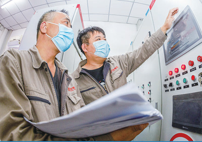 天津市每年实施20项民心工程,将财政支出的75%用于民生领域,连续6年延长供暖,为36万户居民解决历史遗留的房产证难题,完成160多万平方米棚户区、9400万平方米老旧小区改造。图为2021年10月,南开区供热站工作人员正在调试设备。 |
