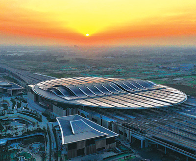 一批重大项目全面推进,多个标志性工程投入使用。京雄城际铁路于2020年12月开通运营,河北雄安高铁站同步投用。图为河北雄安高铁站。 |