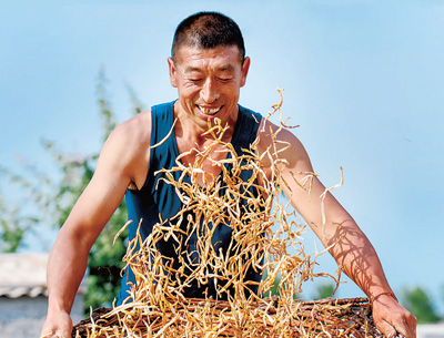 山西省大力发展特色农业,全面推进乡村振兴。图为2021年7月,大同市黄花种植户喜获丰收。 |