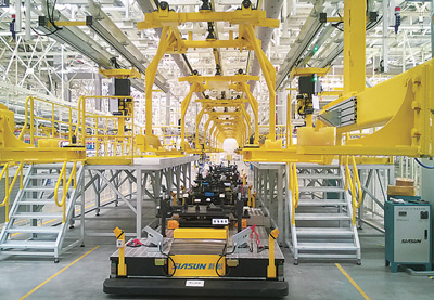 辽宁省强力推进战略性新兴产业、高技术产业发展,超前布局未来产业,重点发展电子信息、新能源汽车、机器人、航空航天、生物医药、新材料、新能源、节能环保等新兴产业。图为沈阳新松机器人公司研发生产的智能移动机器人系统。 |