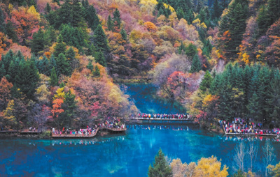 大力推动文化旅游深度融合发展,打造三星堆—金沙、九寨沟—黄龙、大熊猫、都江堰—青城山、峨眉山—乐山大佛等重点文旅品牌和文旅走廊,加快建设世界重要旅游目的地,让四川文旅名扬天下、享誉全球。图为阿坝藏族羌族自治州九寨沟景区。 |