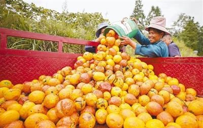 贵州省黔东南苗族侗族自治州丹寨县兴仁镇烧茶村,村民将收获的吊瓜装车。 |