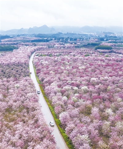 近年来,广西壮族自治区柳州市柳北区大力发展花卉苗木产业,发展“花经济”的同时,美化乡村环境。图为柳北区大仙村,车辆从盛开的洋紫荆苗木林间驶过。 |