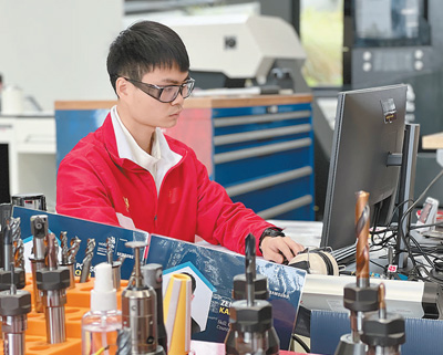 二〇二二世界技能大赛特别赛数控铣等三个项目的比赛近日在德国开赛。图为十二日,一名中国选手在比赛中进行操作。