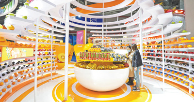 开放发展迈向更高层次。图为在上海市举行的中国国际进口博览会食品及农产品展区,观众在了解进口水果。 |