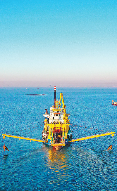 自主创新能力不断增强。图为我国自主设计建造的亚洲最大自航绞吸挖泥船“天鲲号”在江苏连云港港赣榆港区作业。 |