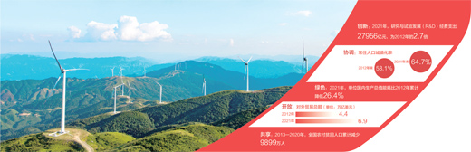 非凡十年,在以习近平同志为核心的党中央坚强领导下,立足新发展阶段,完整、准确、全面贯彻新发展理念,推动构建新发展格局,我们实现更高质量、更有效率、更加公平、更可持续、更为安全的发展,推动中国经济发展取得历史性成就、发生历史性变革。