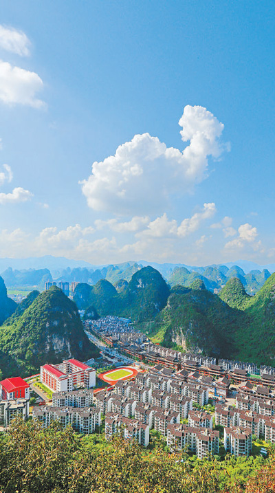 协调发展步伐稳健。图为位于广西壮族自治区柳州市融水苗族自治县的易地扶贫搬迁社区苗家小镇。 |