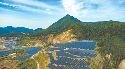 广东省梅州市平远县东石镇,废弃矿山上建成的光伏发电站正在源源不断地输送绿色能源。 |