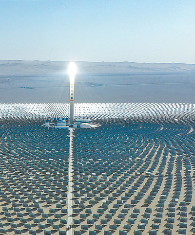 位于甘肃省敦煌市光电产业园区的首航高科敦煌100兆瓦熔盐塔式光热电站。 |