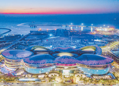 10月22日傍晚,全球最大的单体免税商业综合体——海口国际免税城项目建设现场灯火通明。 石中华摄(影像中国)