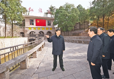 10月26日至28日,中共中央总书记、国家主席、中央军委主席习近平在陕西省延安市、河南省安阳市考察。这是28日上午,习近平在安阳林州市实地察看红旗渠分水闸运行情况。 |