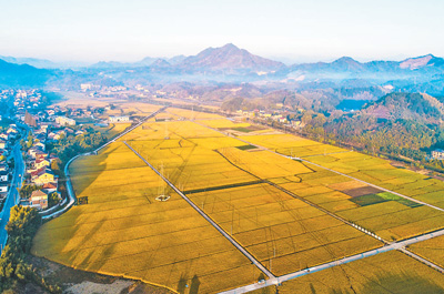 近日,浙江省杭州市临安区天目山镇“天目粮仓”粮食功能区,水稻丰收在望。 |