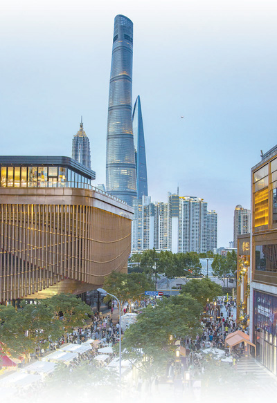 上海外滩金融中心枫泾路周末步行街景色。 |