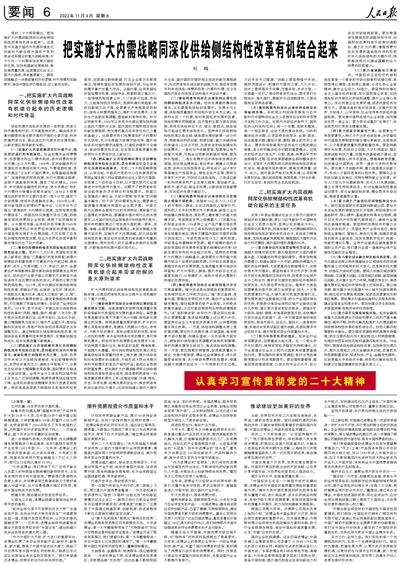 把实施扩大内需战略同深化供给侧结构性改革有机结合起来(认真学习宣传贯彻党的二十大精神)