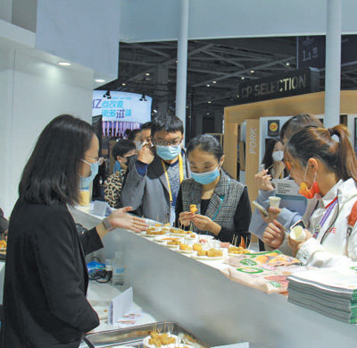 第四届进博会上,参观者在正大展台试吃产品。 |