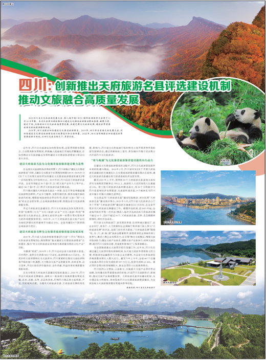 四川坚持以文塑旅、以旅彰文,实施重大文旅产业项目带动战略,加快建设世界重要旅游目的地,打造四川文旅新标识、新地标,推动文旅产业高质量发展。天府旅游名县评选建设机制,充分调动各方积极性,有效促进四川文化强省旅游强省建设,为全国各地文化旅游高质量发展提供参考经验。