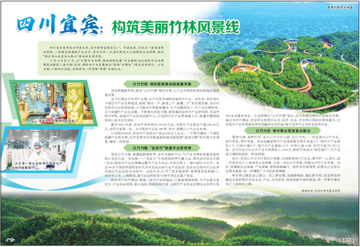四川省宜宾市适合竹类生长,是竹资源富集区之一。竹在宜宾,不仅是一道美丽的风景线、一张绿色低碳的产业名片,更是守护一江清水的长江上游绿色生态屏障、践行“绿水青山就是金山银山”理念的生动实践。