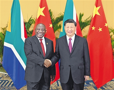 习近平指出,中国和南非有着同志加兄弟的特殊友谊。中南两国都是重要的发展中大国,都坚决维护国际公平正义和发展中国家共同利益。中方始终从战略高度看待中南关系,愿同南非巩固政治互信,推动中南全面战略伙伴关系取得更大发展。