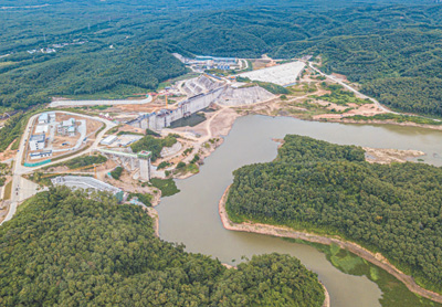 在海南省儋州市,位于北门江干流上的天角潭水利枢纽工程已现雏形。 新华社记者 蒲晓旭摄