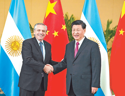 习近平强调,中方愿同阿方加强治国理政经验交流,支持彼此走符合本国国情、顺应人民期待和时代要求的发展道路,支持彼此维护主权、安全、发展利益。双方应该开展文化、媒体、教育、体育、青年、地方等领域交流合作,加快推进高质量共建“一带一路”合作,深化拓展农业、能源、基础设施、航天等领域合作。中方愿进口更多阿根廷优质产品。