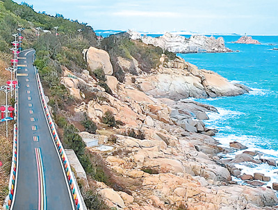 福建湄洲岛作为海岛生态文明建设示范基地,近年来持续加大乡村公路建设力度,强化电力基础设施建设,推广清洁能源,推动智慧出行。如今,湄洲岛建成了“3公里充电圈”,岛上的游览观光车和公交车全部实现电动化。同时,该岛还引入共享汽车、共享自行车等,方便游客和当地居民绿色出行。 图为湄洲岛上的沿海公路。 蒋雷震摄(影像中国)