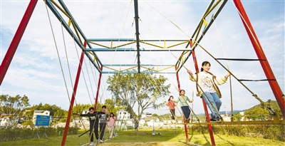 近年来,广东省平远县全域推进农村人居环境整治,积极建设生态宜居宜游美丽乡村,村民的获得感、幸福感不断攀升。图为平远县长田镇乡村趣味乐园,小朋友正在玩耍。