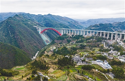 11月28日,仁遵高速公路项目全线通过交工验收,将在12月15日迎来通车运营。仁遵高速全长52.45公里,双向六车道。通车后,遵义市区到仁怀的车程将由现在的1小时30分缩短至30分钟。这条双向六车道的城乡“大动脉”,将真正把农村经济结构调整的路子修到家门口,为群众打通一条脱贫致富路,有力促进当地旅游产业发展和土特产外销,增强沿线乡村与城市之间的联系,助推乡村产业兴旺。图为仁遵高速大发渠特大桥。