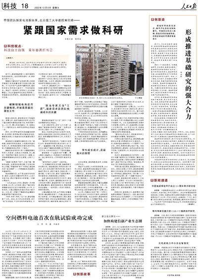 空间燃料电池首次在轨试验成功完成(创新故事)