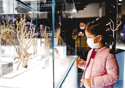 一名小朋友在上海自然博物馆举办的“深海园林”展上参观。 新华社记者 张建松摄