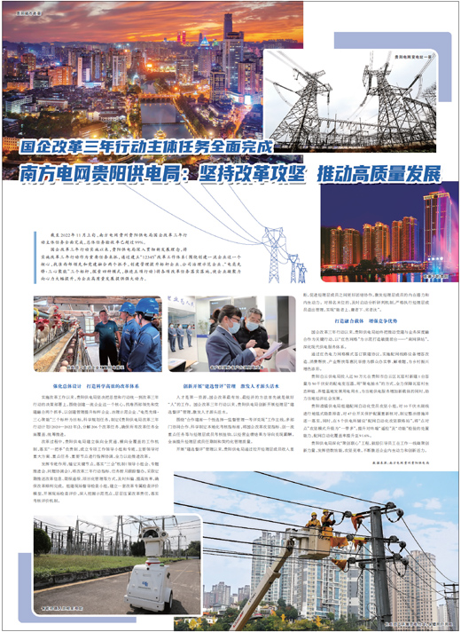 截至2022年11月上旬,南方电网贵州贵阳供电局国企改革三年行动主体任务全面完成,总体任务验收率已超过99%。