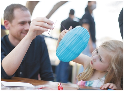 2022年8月13日,在巴西首都巴西利亚举办的“中国一瞬”文化体验周活动上,人们参加灯笼制作体验活动。 |