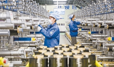 在山东省威海市临港区高性能碳纤维产业项目生产车间,工人正在对生产的碳纤维原丝进行收集。 |