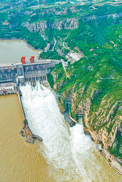 小浪底水利枢纽位于河南省黄河干流,南岸属洛阳市孟津区,北岸属济源市。枢纽首台30万千瓦机组于2000年1月并网发电。2002年以来,小浪底水库每年都要调水调沙,利用“人造洪峰”将下游河床淤积的泥沙送入大海,同时减少小浪底水库的泥沙淤积。今年6月19日至7月7日,小浪底水库参与汛前调水调沙,7月17日开始防洪运作,提前降低水库水位。 |