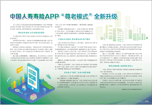 为了让老年人在家也能享受高品质保险保障服务,中国人寿保险股份有限公司(简称“中国人寿寿险公司”)对中国人寿寿险APP进行“科技+服务”全新升级,用科技帮助老年人更好体验数字生活。