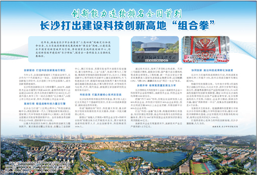 今年6月,全国创新型城市工作座谈会举行,长沙作为7个代表城市之一发言。在国家创新型城市创新能力评价中,长沙连续三年位列全国第八,成为创新策源地城市。