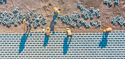 长江安徽省芜湖市河段整治工程现场,工人们正进行生态护坡施工作业。 |