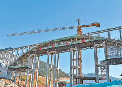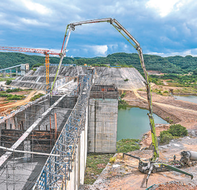 海南省儋州市,天角潭水利枢纽工程主坝正进行混凝土浇筑施工。 |