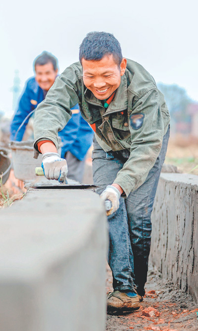 江西省吉安市峡江县金坪民族乡南下村,建筑工人在修建引水渠。 |