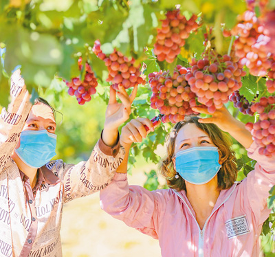 9月2日,新疆昌吉回族自治州呼图壁县唐墩果园葡萄种植农民专业合作社的农民在采摘葡萄。 |