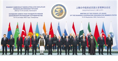当地时间9月16日,国家主席习近平在撒马尔罕国际会议中心出席上海合作组织成员国元首理事会第二十二次会议并发表重要讲话。这是大范围会谈前,与会各方集体合影。 |