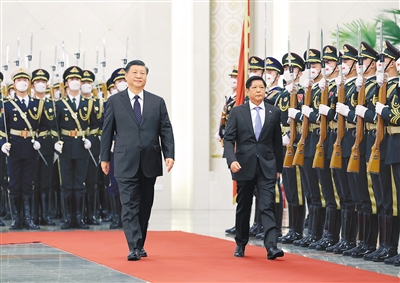 一月四日,国家主席习近平在北京人民大会堂同来华进行国事访问的菲律宾总统马科斯举行会谈。这是会谈前,习近平在人民大会堂北大厅为马科斯举行欢迎仪式。 |