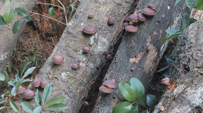 采用段木法栽培的香菇,将原木截成1米左右的短段,进行香菇集约化生产。 |